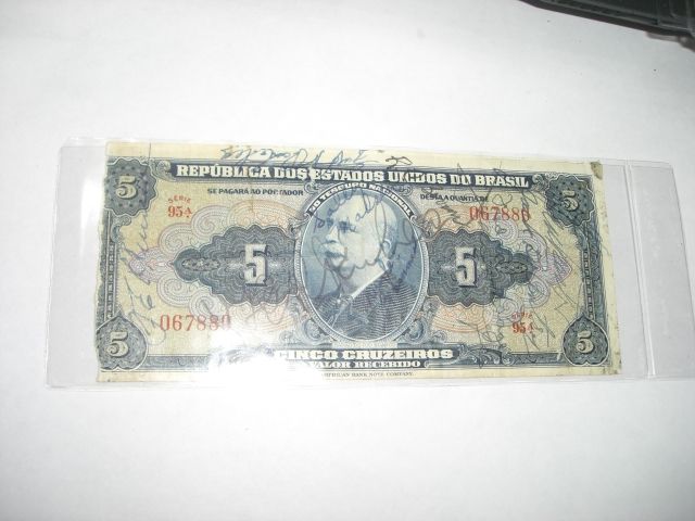 1943 5 CINCO CRUZEIROS Brazil Bank Note Serial # 046142 Note has Many Signatures on it *Please Look at Picture to Determine Grade of Bill*!! ***Coin & Currency Grades, Conditions and Values are not Northern Colorado Estate Liquidators Responsibilty. Grades, Condition and Values are determined by Consigner(s) & Buyers ONLY***