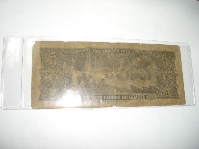 1943 5 CINCO CRUZEIROS Brazil Bank Note Serial # 046142 *Please Look at Picture to Determine Grade of Bill*!! ***Coin & Currency Grades, Conditions and Values are not Northern Colorado Estate Liquidators Responsibilty. Grades, Condition and Values are determined by Consigner(s) & Buyers ONLY***