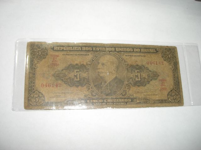 1943 5 CINCO CRUZEIROS Brazil Bank Note Serial # 046142 *Please Look at Picture to Determine Grade of Bill*!! ***Coin & Currency Grades, Conditions and Values are not Northern Colorado Estate Liquidators Responsibilty. Grades, Condition and Values are determined by Consigner(s) & Buyers ONLY***