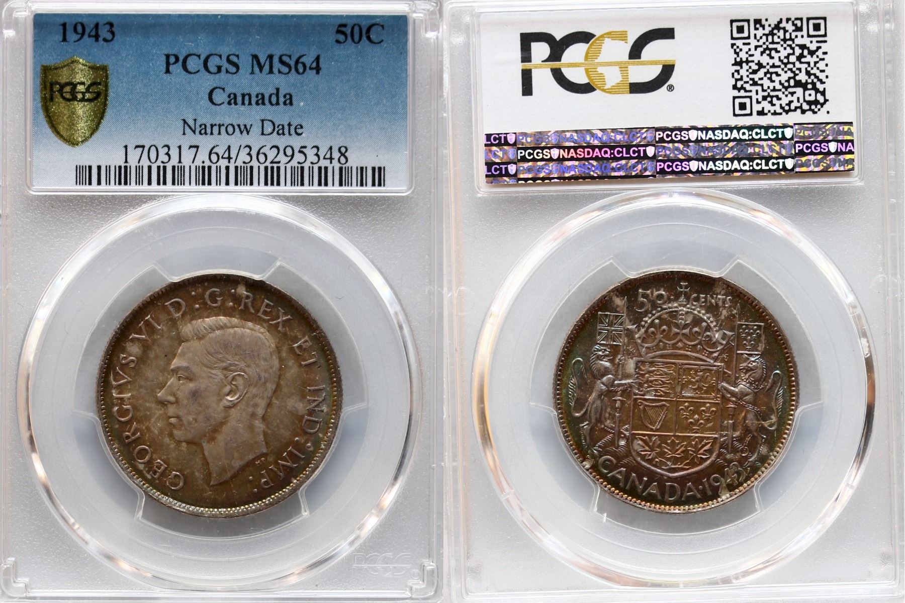 1943 50¢ "Narrow Date" PCGS Choice Mint State-64