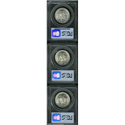 <B>1943 50C MS66 PCGS,</B></I> brilliant aside from a dap of color near the Y in LIBERTY; <B>1944 MS66 PCGS,</B></I> untoned and lustrous with clean surfaces; and a <B>1945-D MS66 PCGS,</B></I> wisps of chestnut color, boldly struck, a few tiny ticks. 3 Coins Lot:8128
