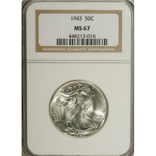 1943 50C MS67 NGC. This lustrous ice-white example is