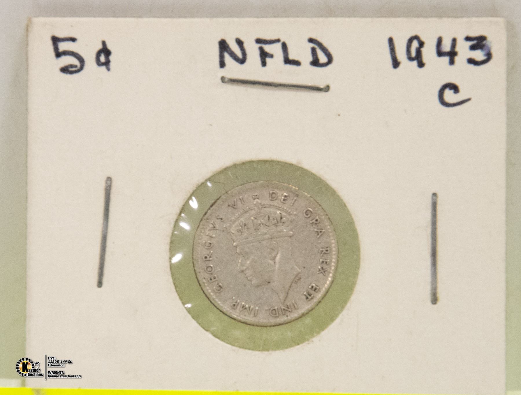 1943 C NEWFOUNDLAND SILVER 5 CENT