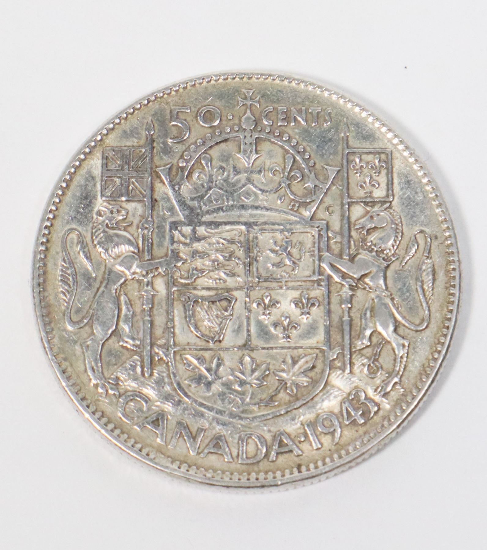 1943 CANADA SILVER HALF DOLLAR 0.3-OZ OF SILVER