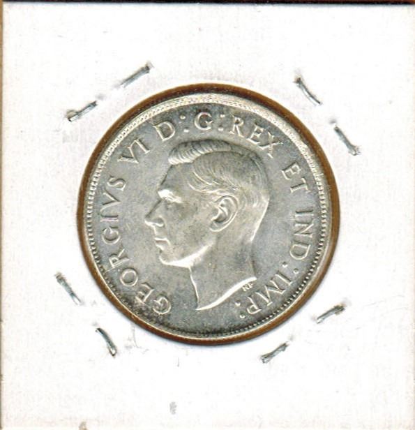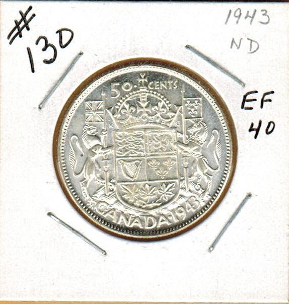 1943 CANADIAN SILVER 50 CENT COIN - Narrow Date