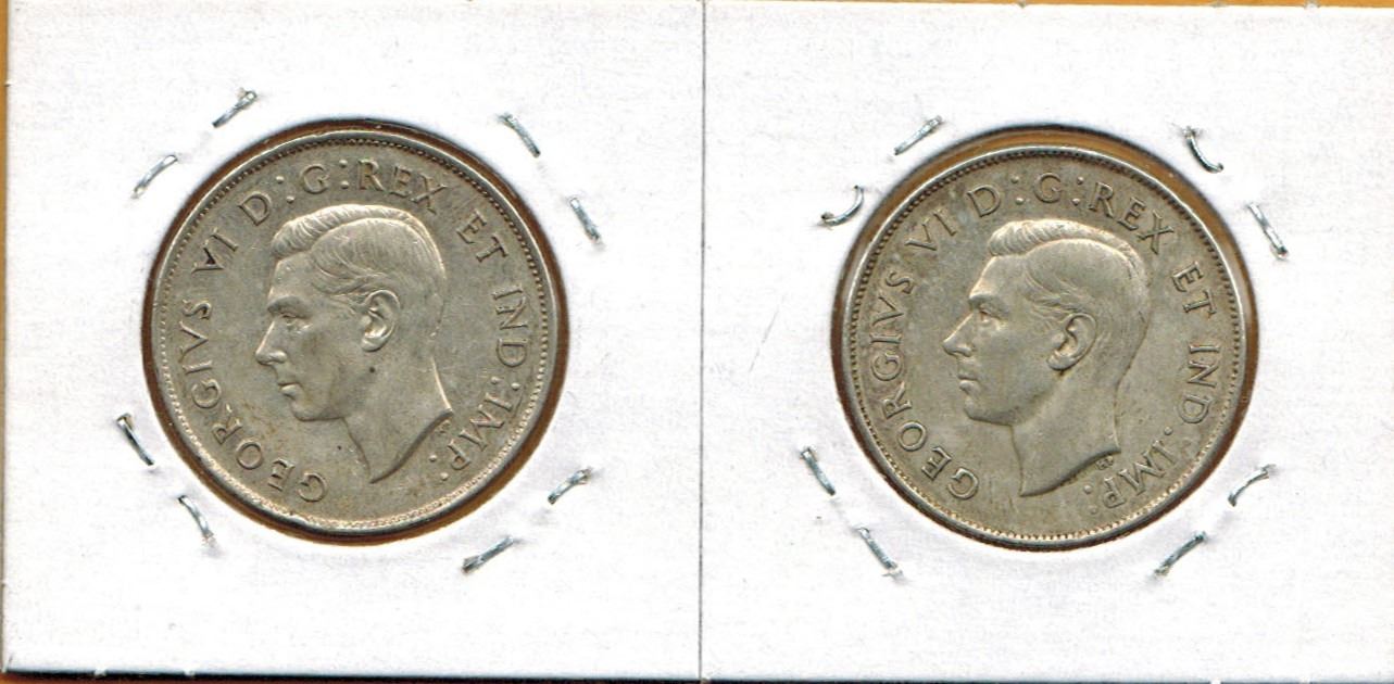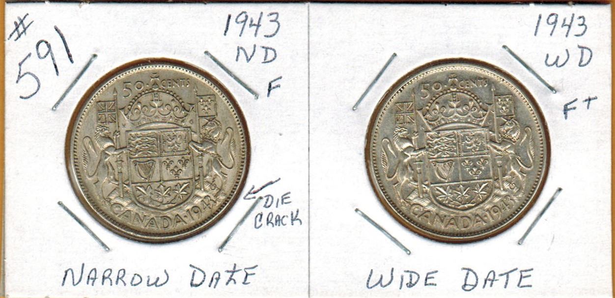1943 CANADIAN SILVER 50 CENT PIECES (2) - Narrow Date & Wide Date Types