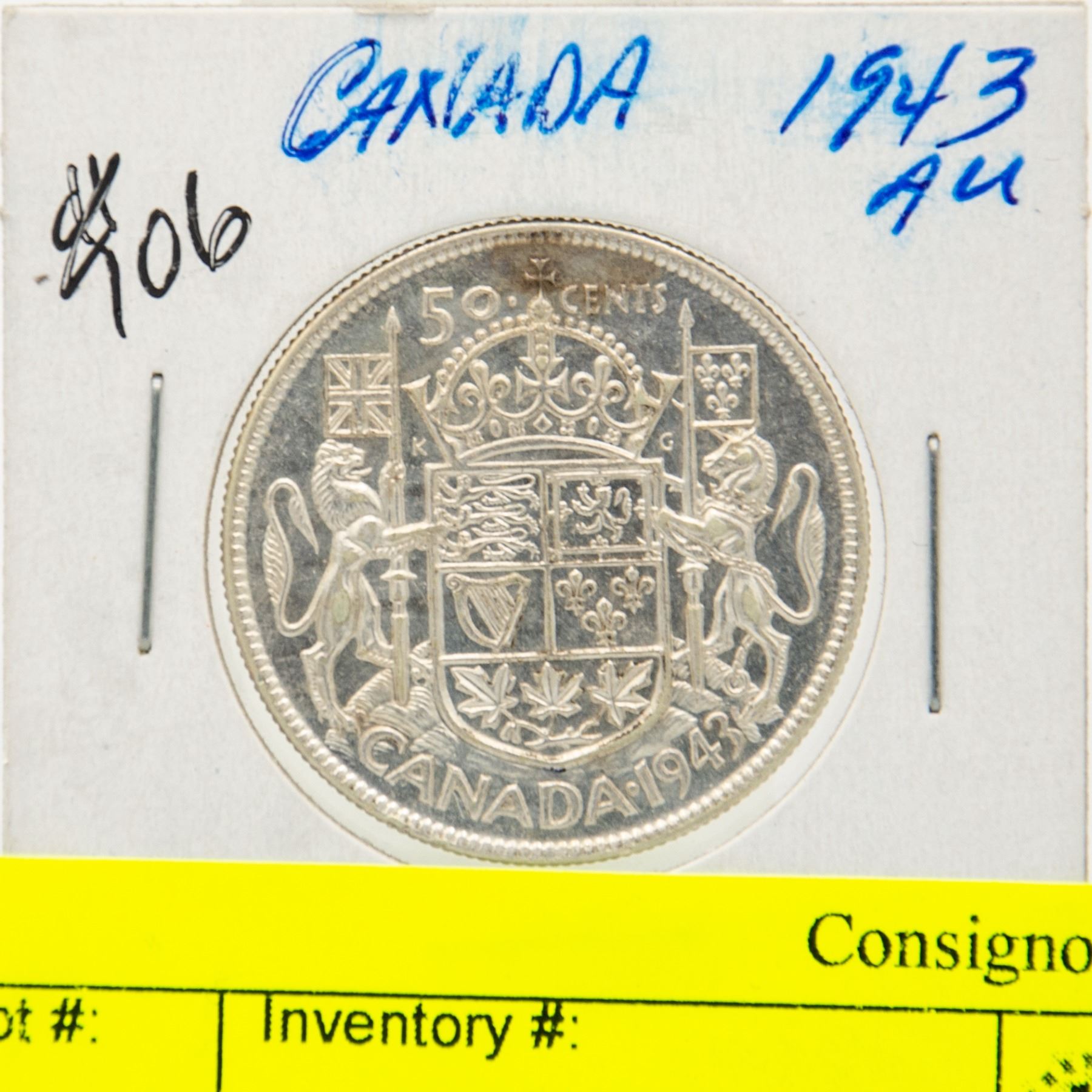 1943 CANADIAN SILVER HALF DOLLAR - AU