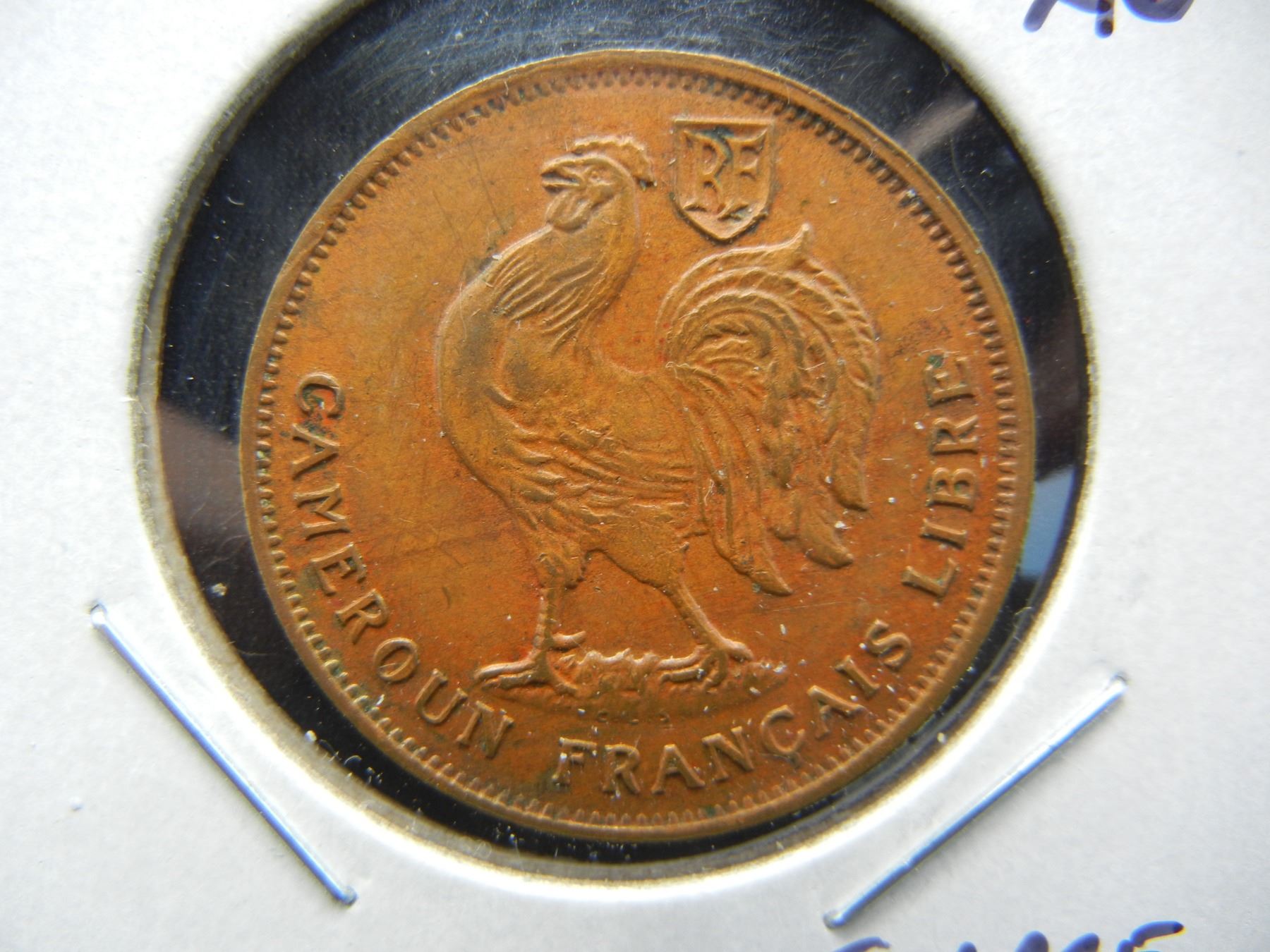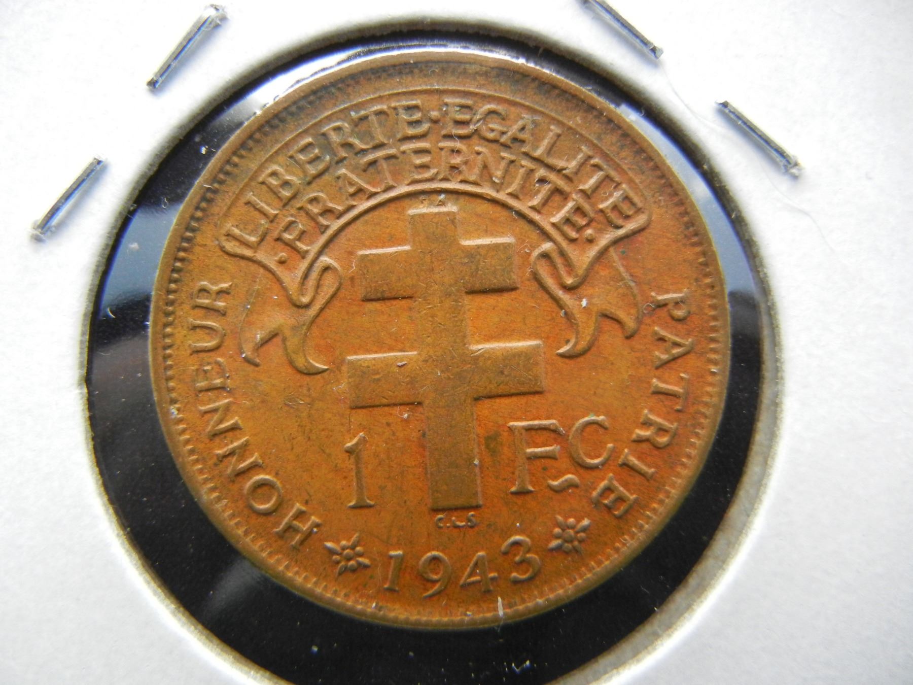 1943 Cameroon 1 Franc. AU. Scarce Type.