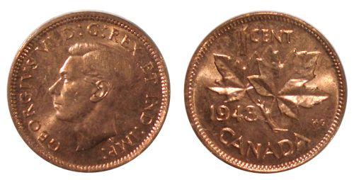 0031 - 1943 Canada Small Cent-ICCS MS64Red