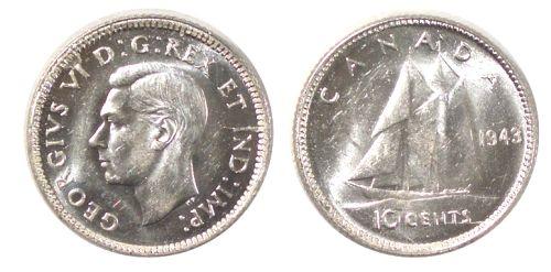 0183 - 1943 Canada Ten Cents-ICCS MS63