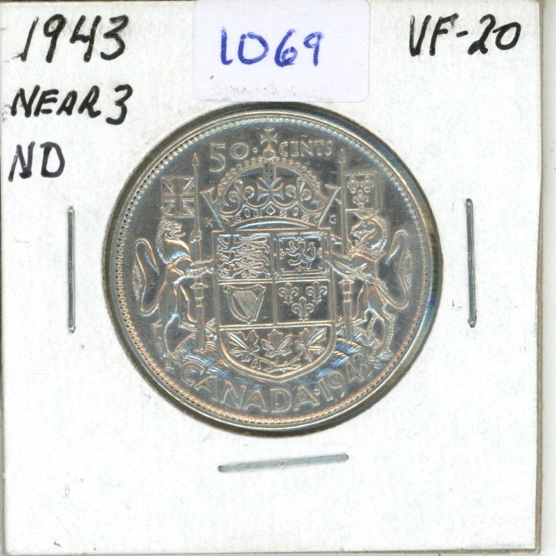1943 Canadian 50 Cent Coin - Near 3, ND, VF-20