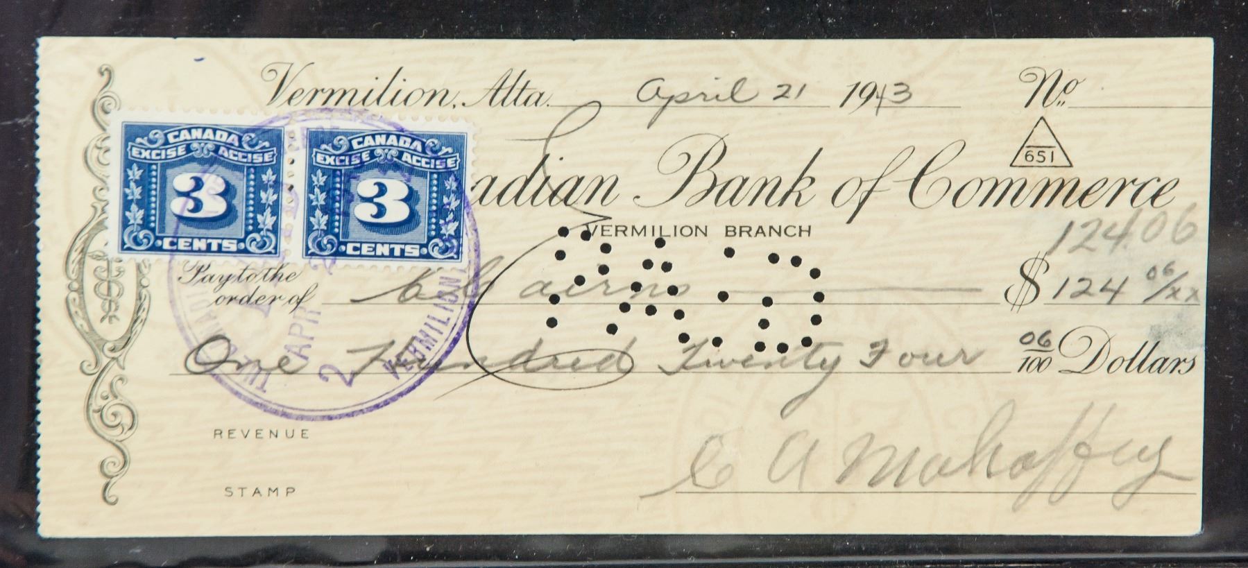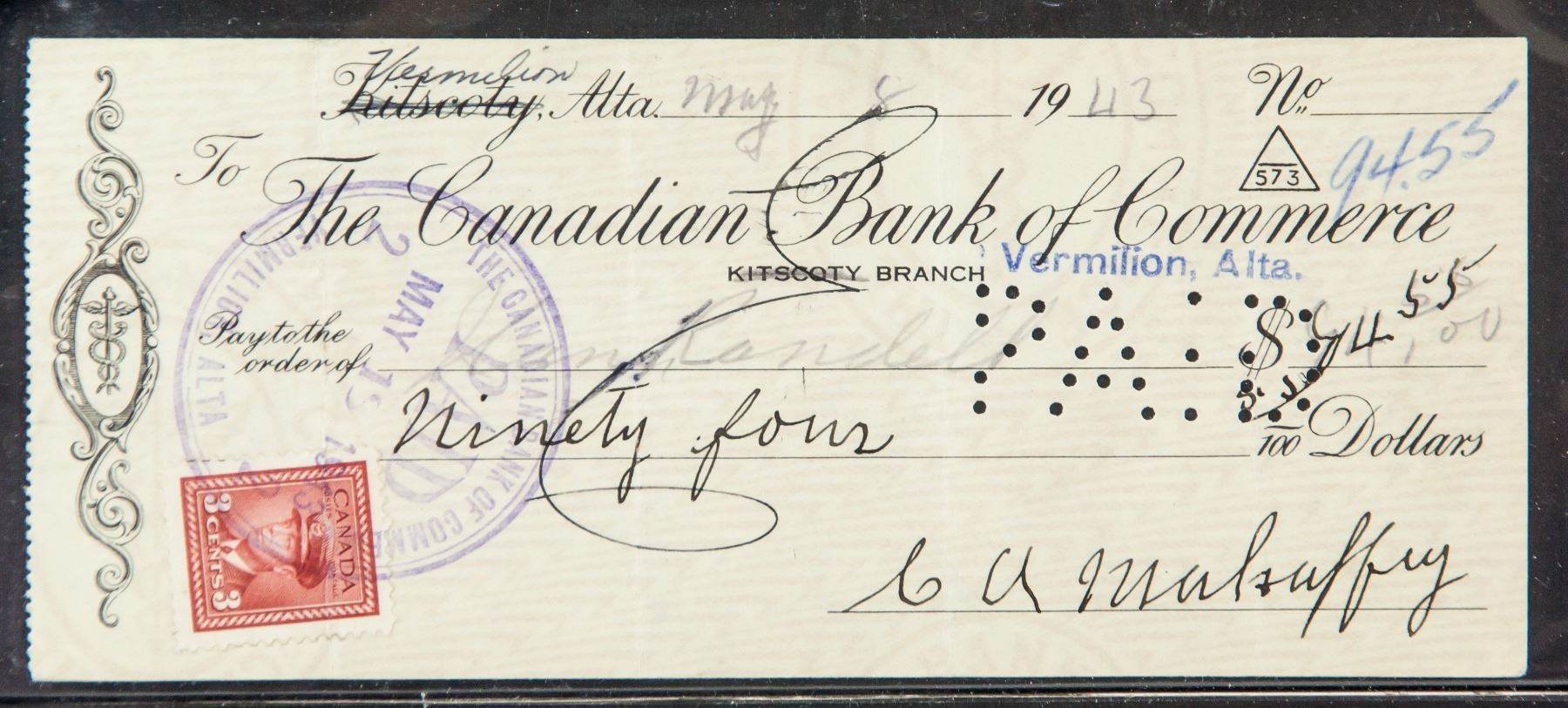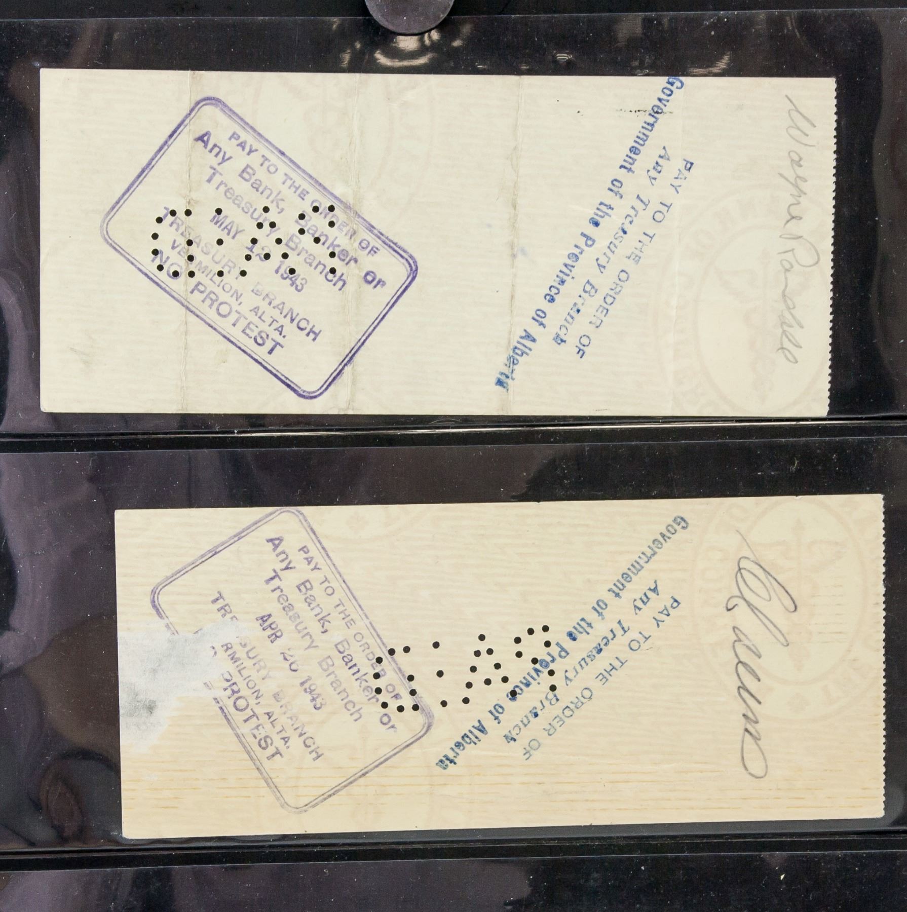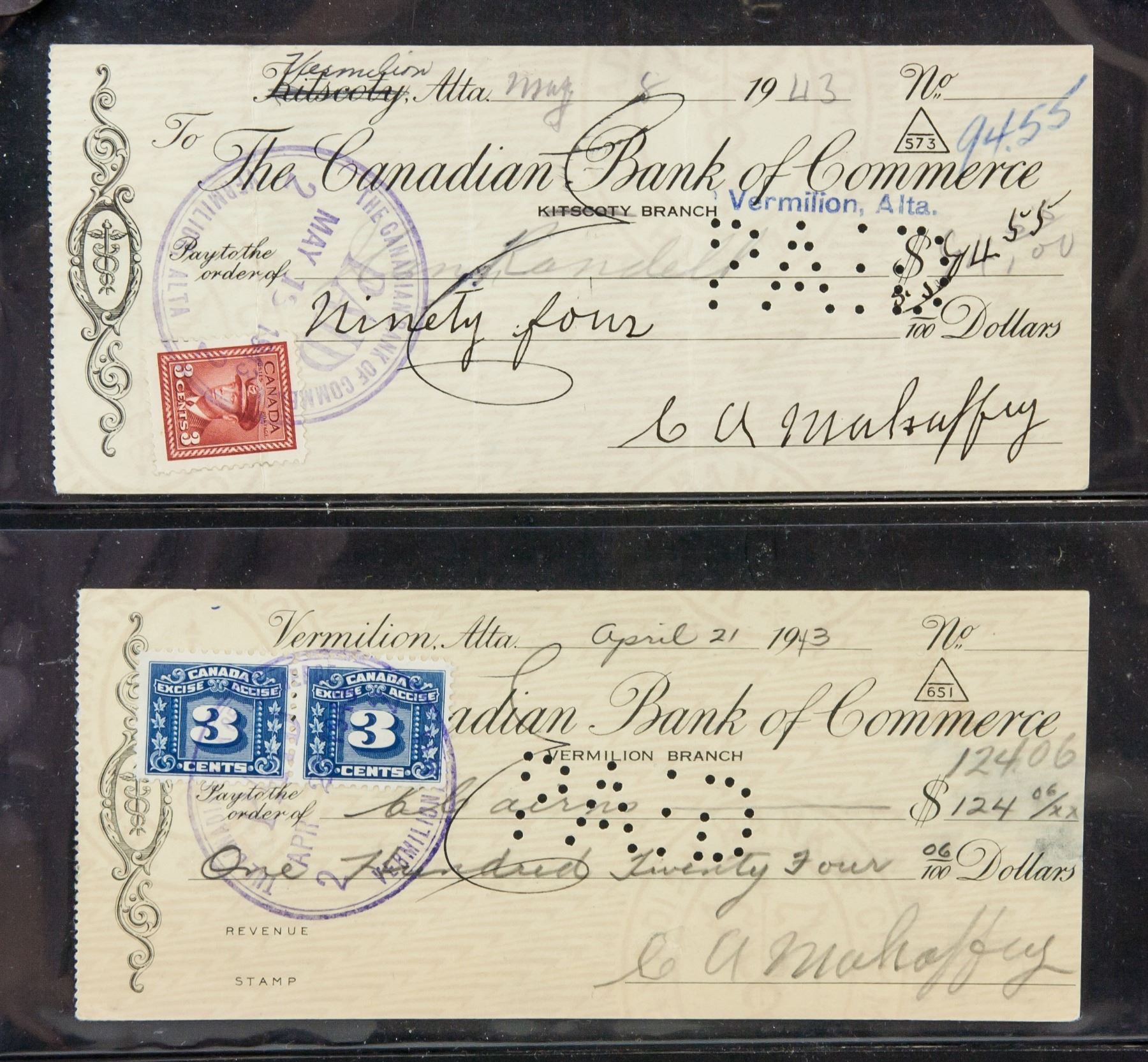 1943 Canadian Bank of Commerce Cancelled Cheques, 2 PC, 7 x 16.2 cm
