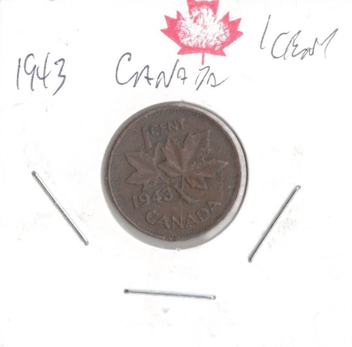 1943 Canadian One Cent. CND Penny 1943 WW II 89,111,969