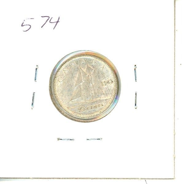 1943 Canadian Silver Ten Cent Coin