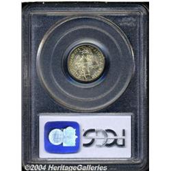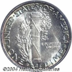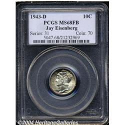 <B>1943-D<10C> MS68 Full Bands PCGS.</B></I> Ex: Jay Eisenberg Collection. A lovely candidate for inclusion in a type set of stunning Superb Gems, this coin would also do justice to any collection that highlights originality. Brilliant (or nearly so) in the centers, both sides exhibit rich crimson, gold and mint-green peripheral toning. The luster is full and frosty, the devices are sharp and pristine. Population: 14 in 68, 0 finer (7/04). <BR><BR><B>Important notice:</B> Heritage usually auctions material at the rate of 200-250 lots per hour. On some occasions eBay Live bid software or the Internet may not be able to keep up with the pace of the auction. We recommend placing a realistic absentee bid now as insurance to avoid disappointment. Occasionally the auctioneer may eliminate or reject an eBay Live bid, and the auctioneer may also reopen a lot after the close of the eBay live bidding (usually because we missed an audience bid), and may reject your bid even if it shows you as the winning bidder. By bidding via eBay Live, you agree that Heritage may award the lot to another bidder at its sole discretion under the circumstances described above or any other reasonable circumstances. Since eBay bids are not shown to us until we open the lot on the floor, we treat those bids just like floor bids. In most cases the floor responds before the eBay bid is presented to us, due to Internet lag time, so for consistency we have made it a policy that floor bids are always considered first over tie eBay live bids. Also please note that all Heritage lots purchased through eBay Live carry a 20% Buyer's Premium. Please make sure you read the Terms and Conditions before you bid. </span></font></tr></table></td></tr></table>