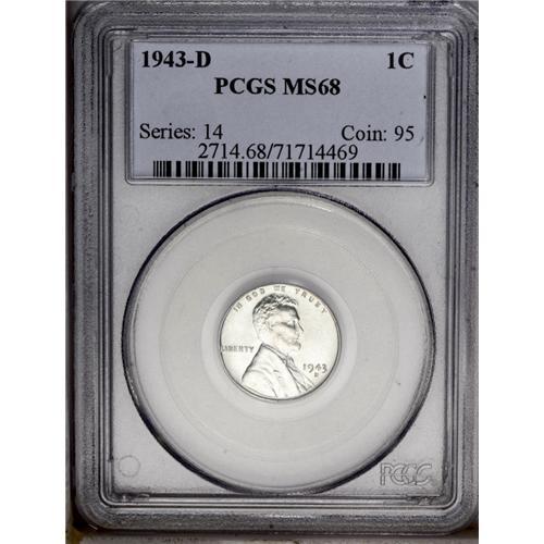 1943-D 1C MS68 PCGS. Fully struck with bright, smooth