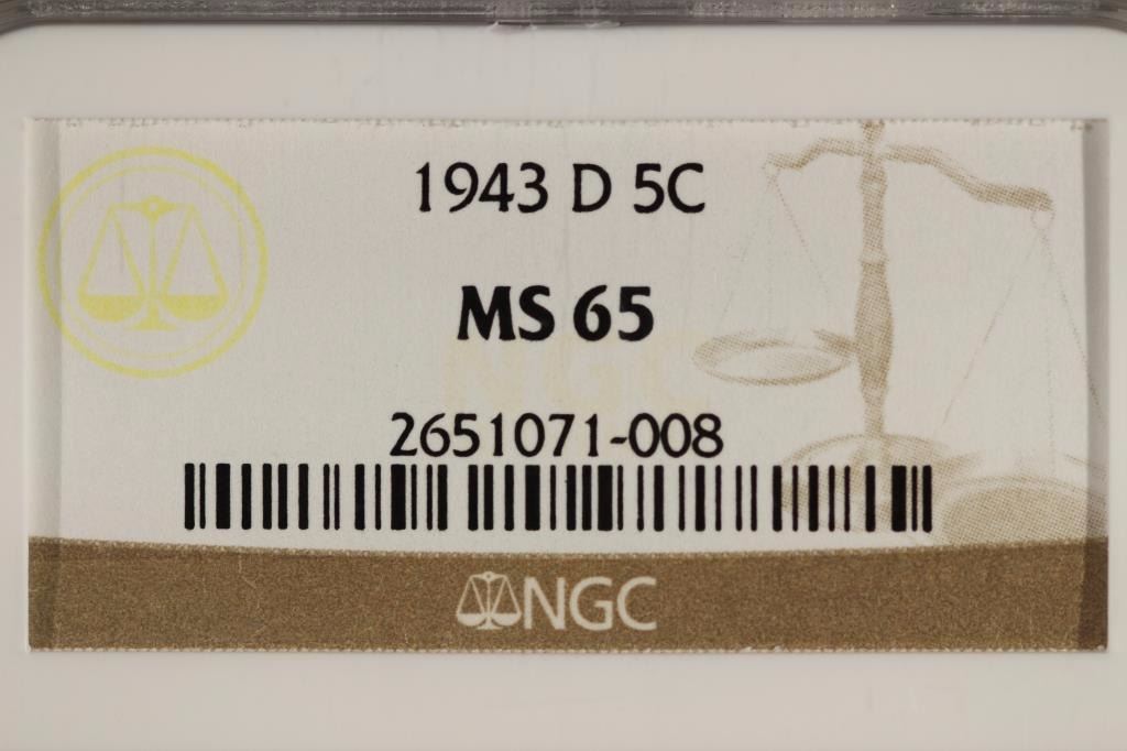 1943-D 35% SILVER JEFFERSON WAR NICKEL NGC MS65