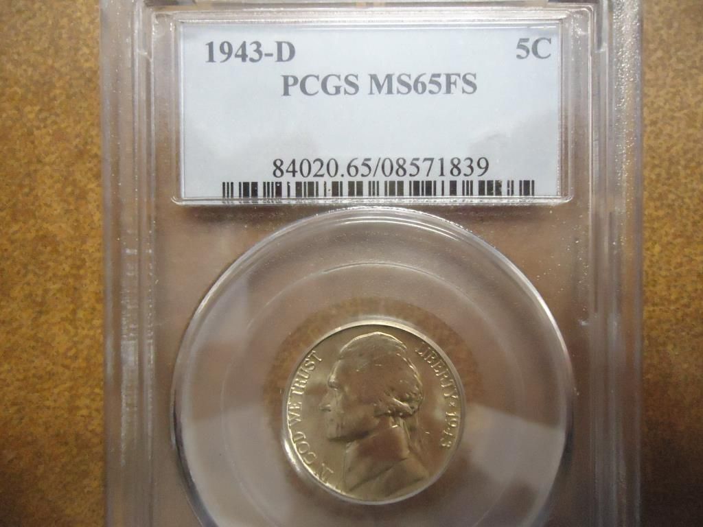 1943-D 35% SILVER JEFFERSON WAR NICKEL PCGS MS65FS