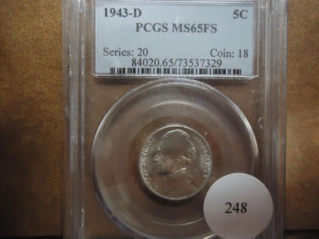 1943-D 35% SILVER JEFFY WAR NICKELS PCGS MS65 FS