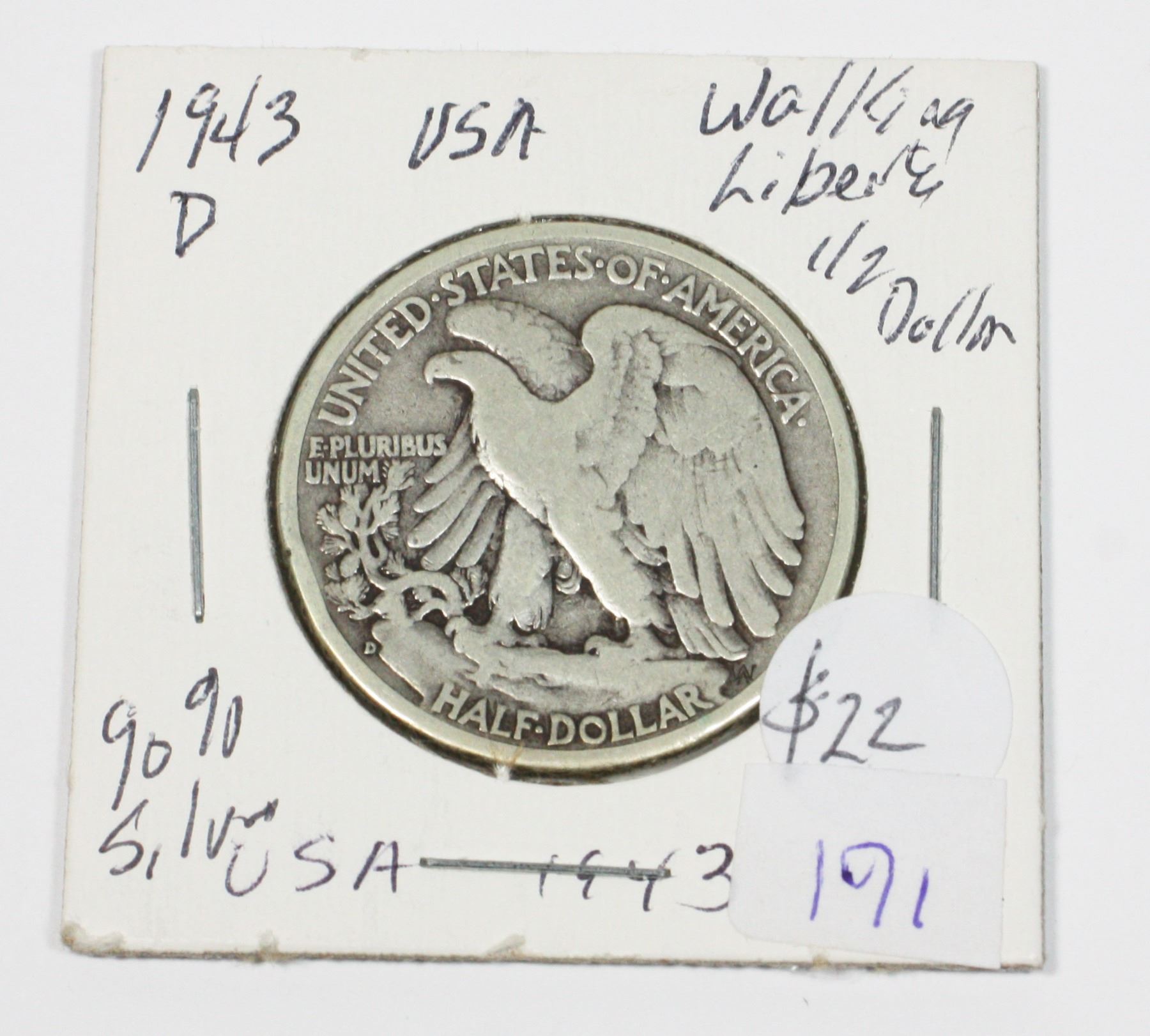 1943 D 50 CENT STANDING LIBERTY 90% SILVER USA