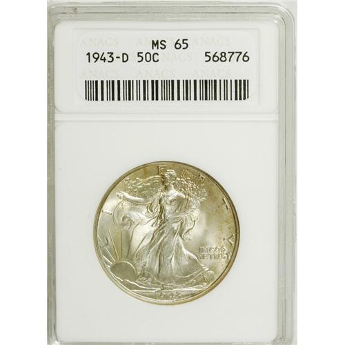 1943-D 50C MS65 ANACS. NGC Census: (1487/1317). PC