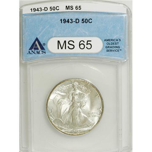 1943-D 50C MS65 ANACS. NGC Census: (1487/1321). PCGS P