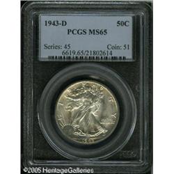<B>1943-D 50C MS65 PCGS.</B></I> Highly lustrous surfaces reveal just a touch or two of speckled olive-gold color. A couple of marks on the left legs of Liberty and the eagle are mentioned for accuracy.<BR><I>From The William & Harrison Hiatt Registry Collection, Part Two.</B></I> Lot:8134