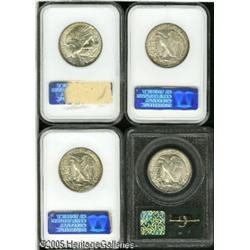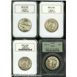 <B>1943-D 50C MS66 NGC,</B></I> FS-010.5, lustrous and crisp, peripheral tan patina; <B>1945-D MS65 NGC,</B></I> well preserved aside from a single pinscratch above the skirt lines; <B>1945-D MS66 PCGS,</B></I> dappled russet patina, a faint fingerprint on the left obverse; and a <B>1947-D MS65 NGC,</B></I> lustrous and impressive, golden-brown color grazes the borders. All four pieces are in prior generation holders. 4 Coins Lot:8135