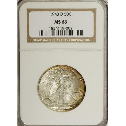 1943-D 50C MS66 NGC. NGC Census: (1110/210). PCGS
