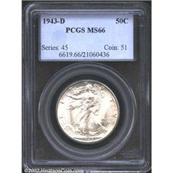 1943-D 50C MS66 PCGS. A lustrous and well struck Gem with a hint of dusky gray color at the margins.