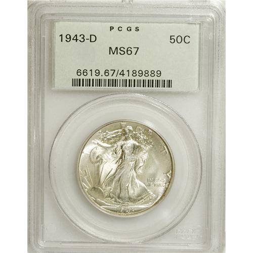 1943-D 50C MS67 PCGS. PCGS Population (191/2). NGC