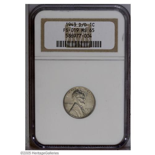 1943-D/D 1C MS65 NGC. FS-019. RPM-1. This is one of t 1943-D/D[1C] MS65 NGC.