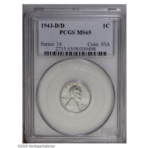 1943-D/D 1C MS65 PCGS. A razor-sharp strike and strong 1943-D/D[1C] MS65 PCGS.