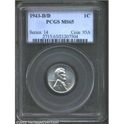 1943-D/D 1C MS65 PCGS. RPM-1, FS-019. A widely repunched mintmark variety, the present Gem readily r