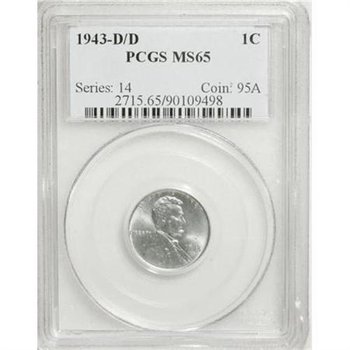 <B>1943-D/D 1C MS65 PCGS.</B></I> FS-019. RPM-1. The mintmark is widely repunched southwest, as photographed on page 116 of the 2008 <I>Guide Book.</B></I> A razor-sharp strike and strong cartwheel luster confirm the Gem grade. Essentially free from contact, though some minute gray flecks are distributed. The obverse field has some minuscule trapped air bubbles, as made. Population: 33 in 65, 29 finer (11/07).<BR><I>From The Madison Collection.</B></I><BR><BR><B>Coin Engraver:</B> James B. Longacre<BR><BR><b>Shipping:</b> Coins & Currency (<a target="_blank" href="http://www.heritageauctions.com/common/shipping.php">view shipping information</a>)