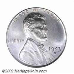 1943-D/D 1C MS66 PCGS. The first mintmark was incompletely effaced, probably because of hurried wartime conditions, and is abundantly clear. The surfaces are bright white and show no signs of oxidation. Important notice: We expect to be auctioning lots at the rate of 200-250 per hour. Sometimes eBay Premier live bid software cannot keep up with that pace, so we strongly recommend that you place a realistic proxy bid now as insurance to avoid disappointment. Also please note that all Heritage/CAA lots purchased through eBay Premier carry a 20% Buyer's Premium. Please make sure you read the Terms and Conditions.