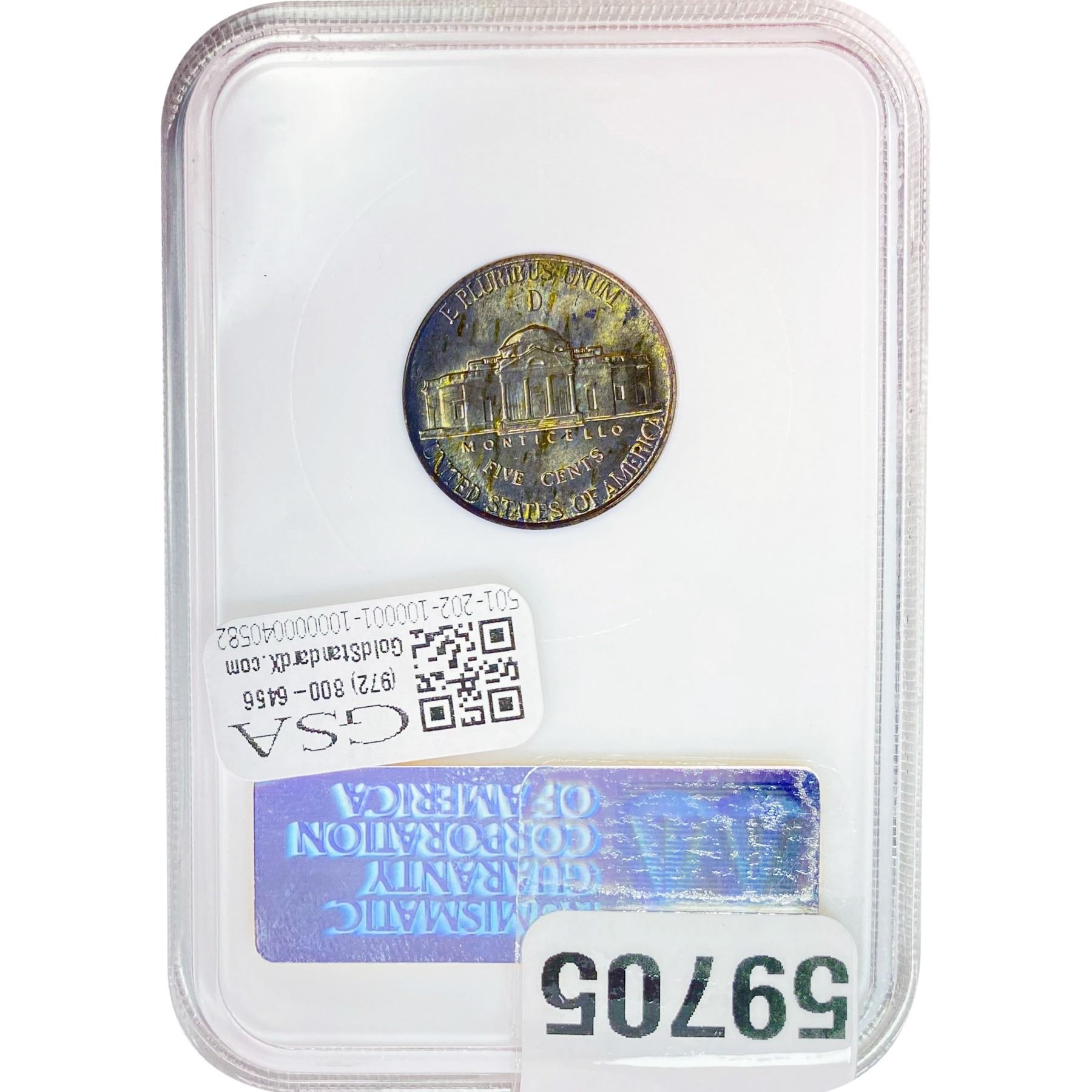 e. Coins sold referencing a third-party grading service are sold “AS IS” without any express or implied warranty, except for a guarantee by GSA that they are genuine. Removal or alteration of the holder, voids all of Bidder’s claims concerning that Product. Certain warranties may be available from the grading services and Bidders are referred to them for further details: Numismatic Guaranty Corporation (NGC), PO Box 4776, Sarasota, FL 34230, www.ngccoin.com/services/writtenguarantee.asp; Professional Coin Grading Services (PCGS), PO Box 9458, Newport Beach, CA 92658, www.pcgs.com/guarantee.html; ANACS, 6555 S. Kenton St., Ste. 303, Englewood, CO 80111; and Independent Coin Grading Co. (ICG), 7901 East Bellview, Ave., Suite 50, Englewood, CO 80111.