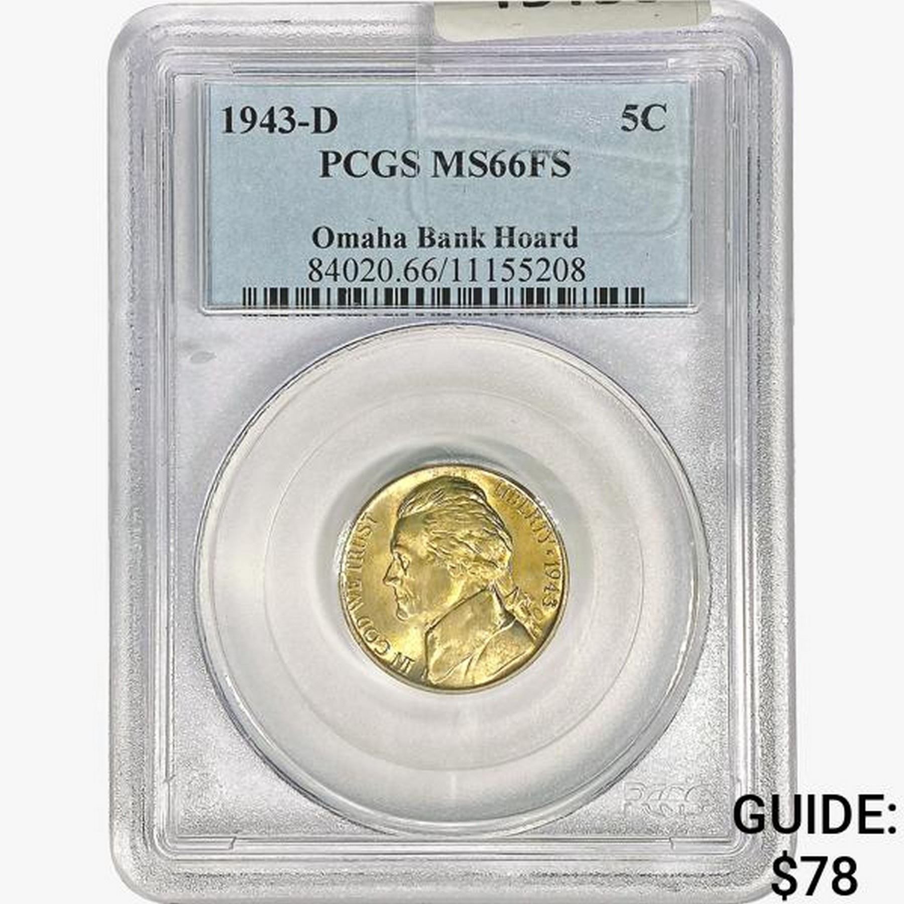 1943-D Jefferson Nickel PCGS MS66 FS Omaha Bank Ho