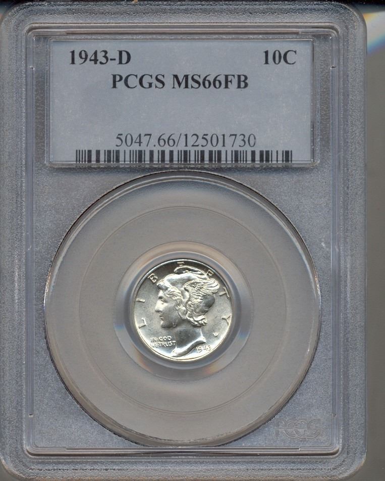 One 1943-D Mercury Dime Coin PCGS MS66FB.
