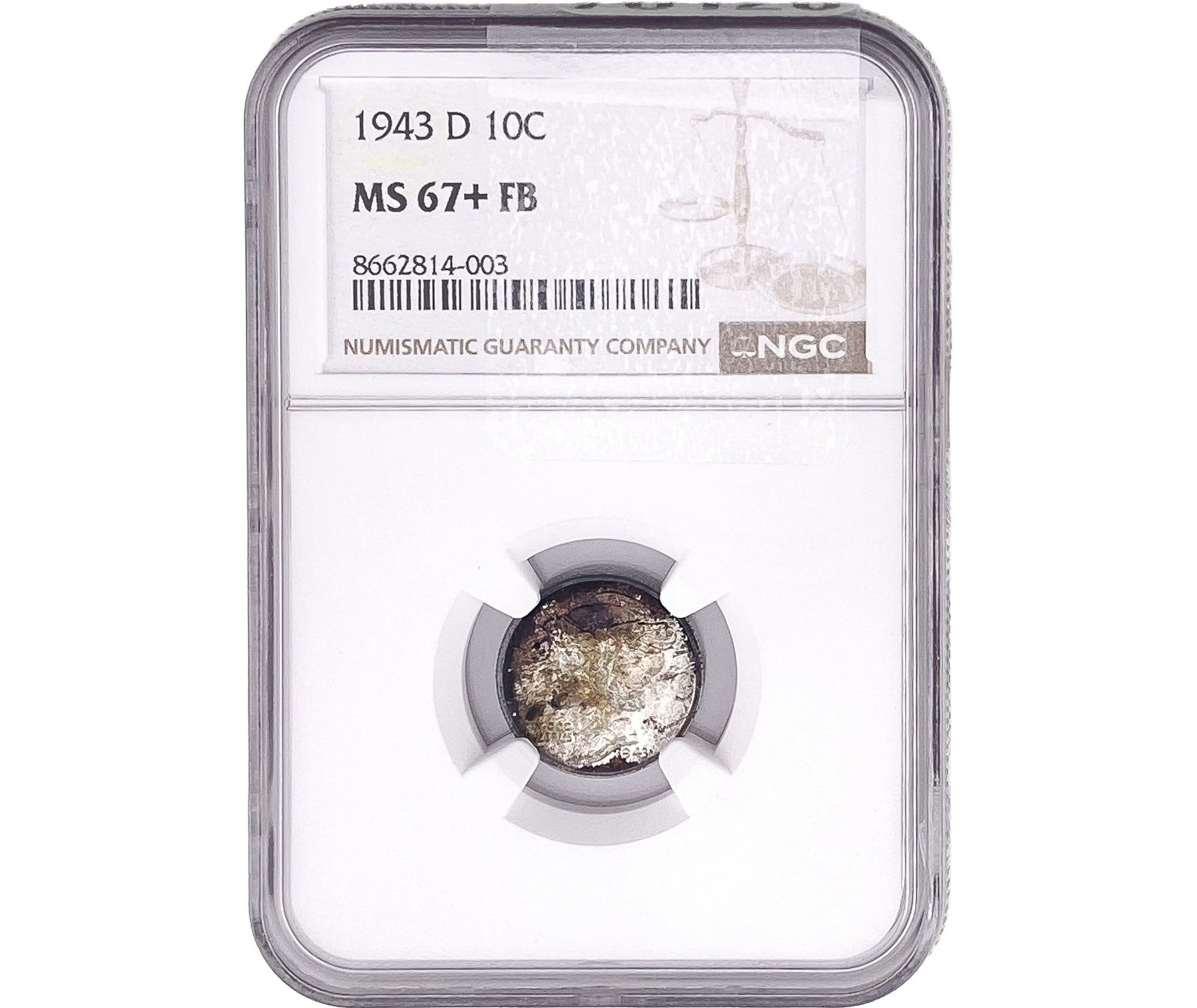 1943-D Mercury Silver Dime NGC MS65+ FB