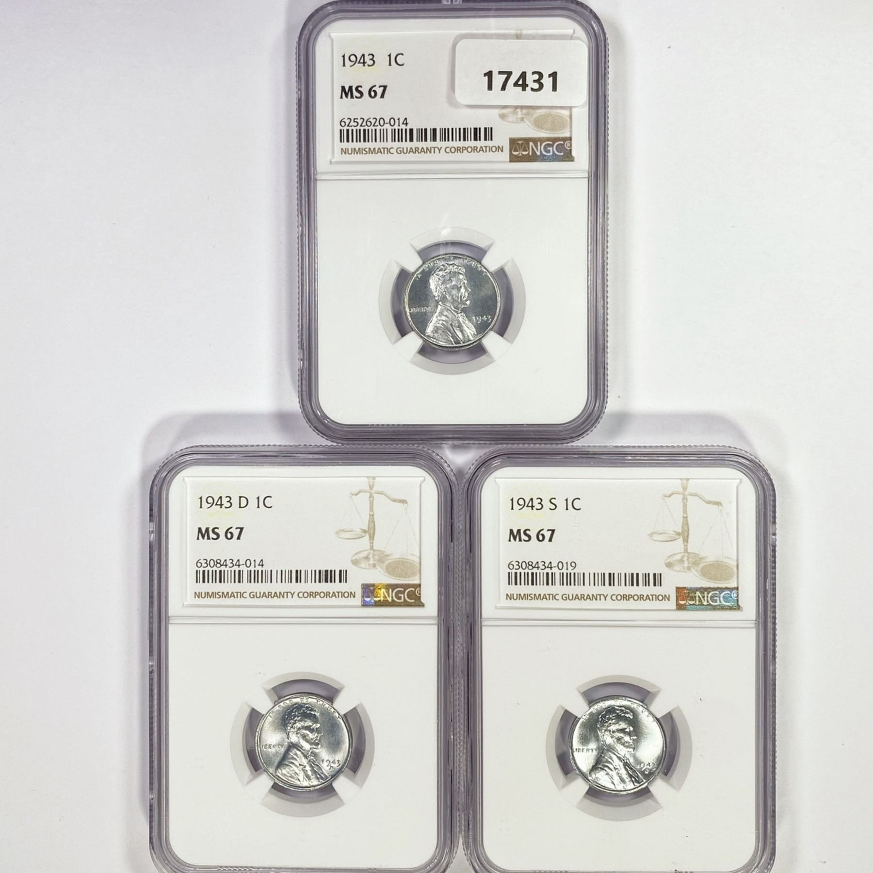 1943 (D,S) Set (3) Wheat Cent NGC MS67
