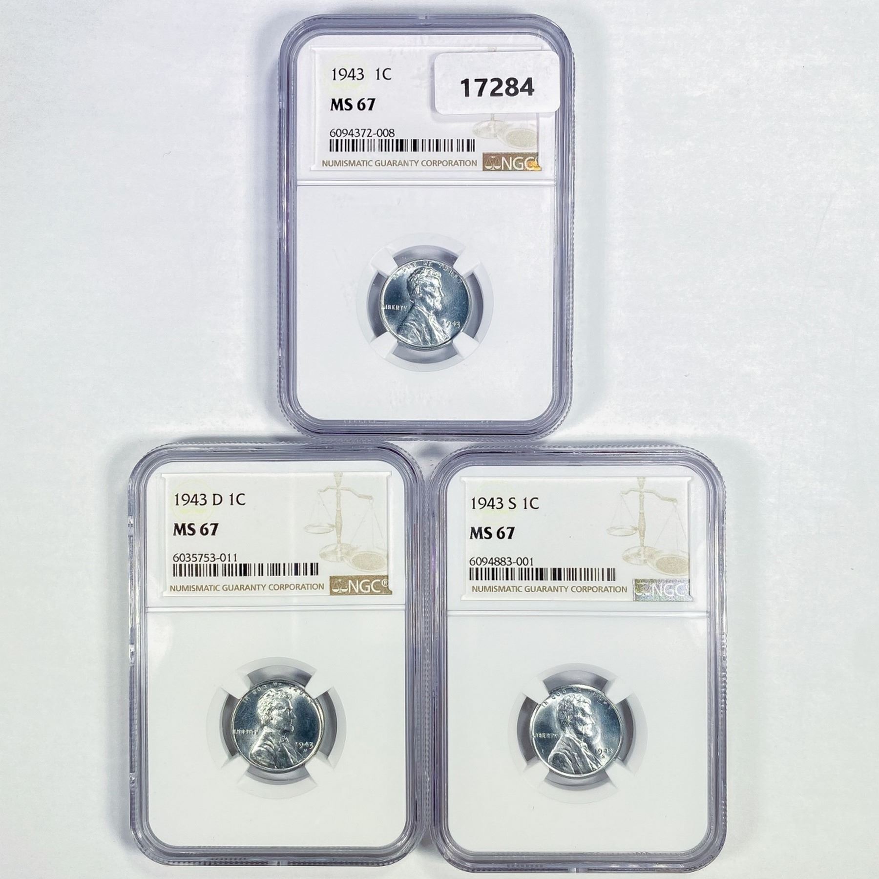 1943 (D,S) Set (3) Wheat Cent NGC MS67