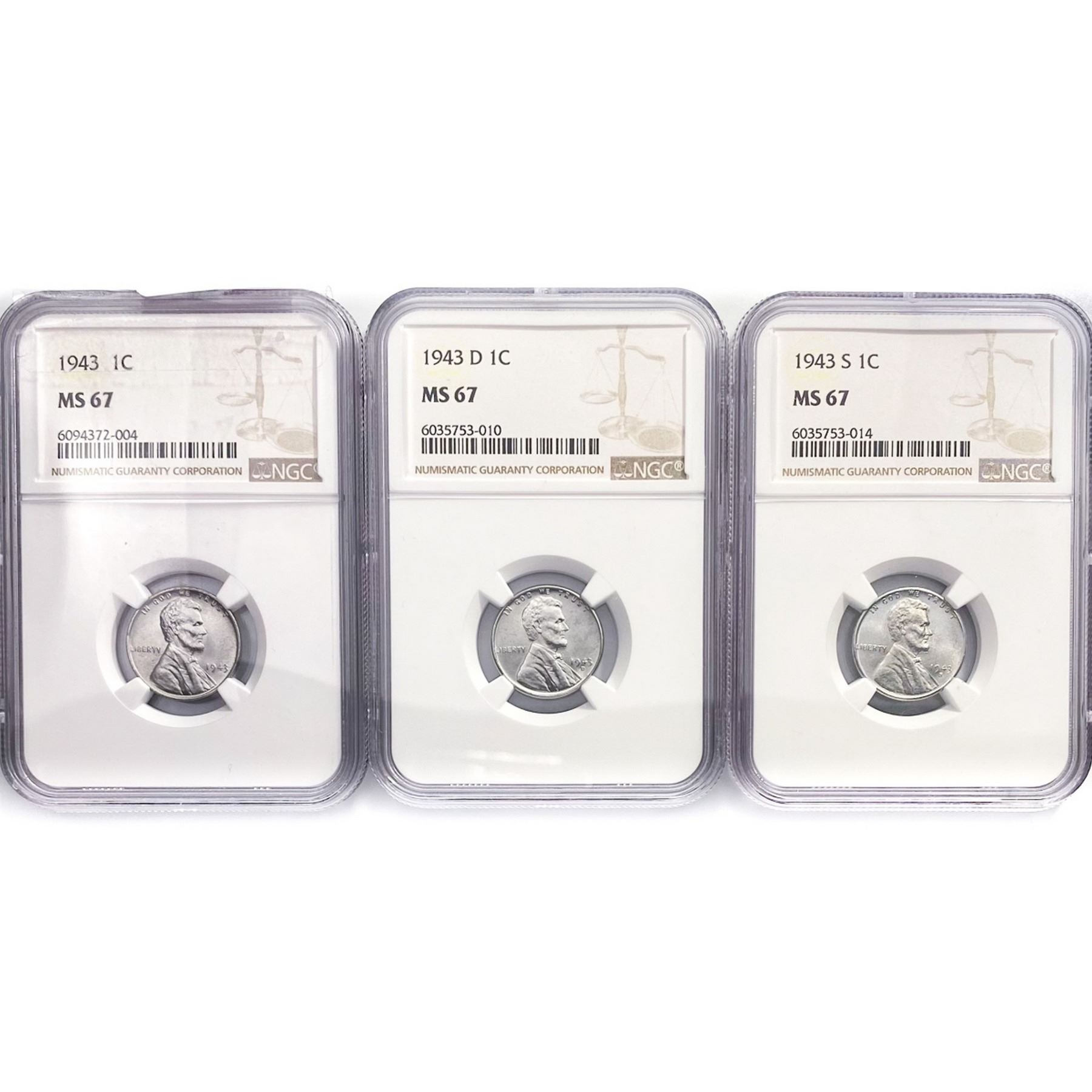 1943 (D,S) Set (3) Wheat Cent NGC MS67