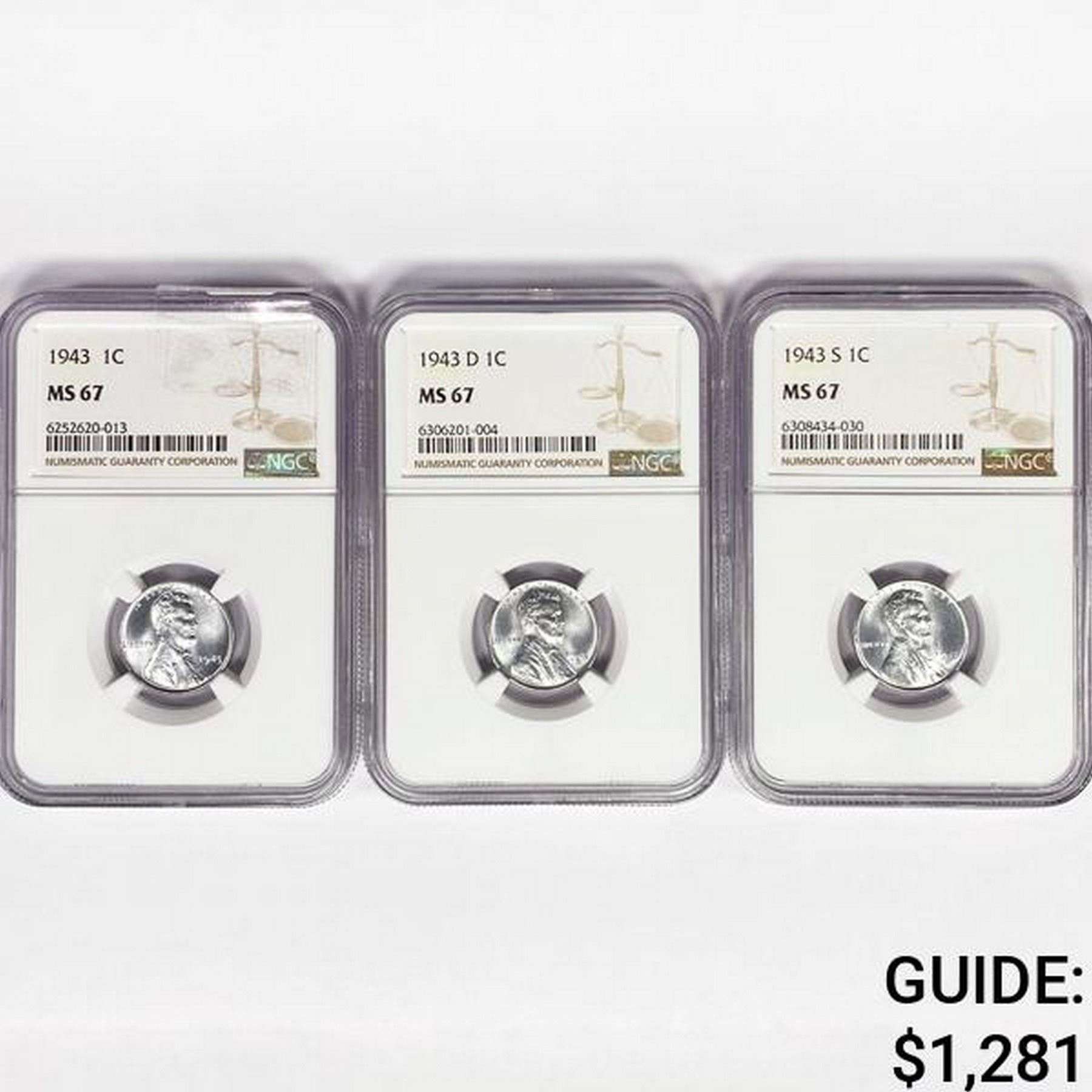 1943 (D,S) Set (3) Wheat Cent NGC MS67