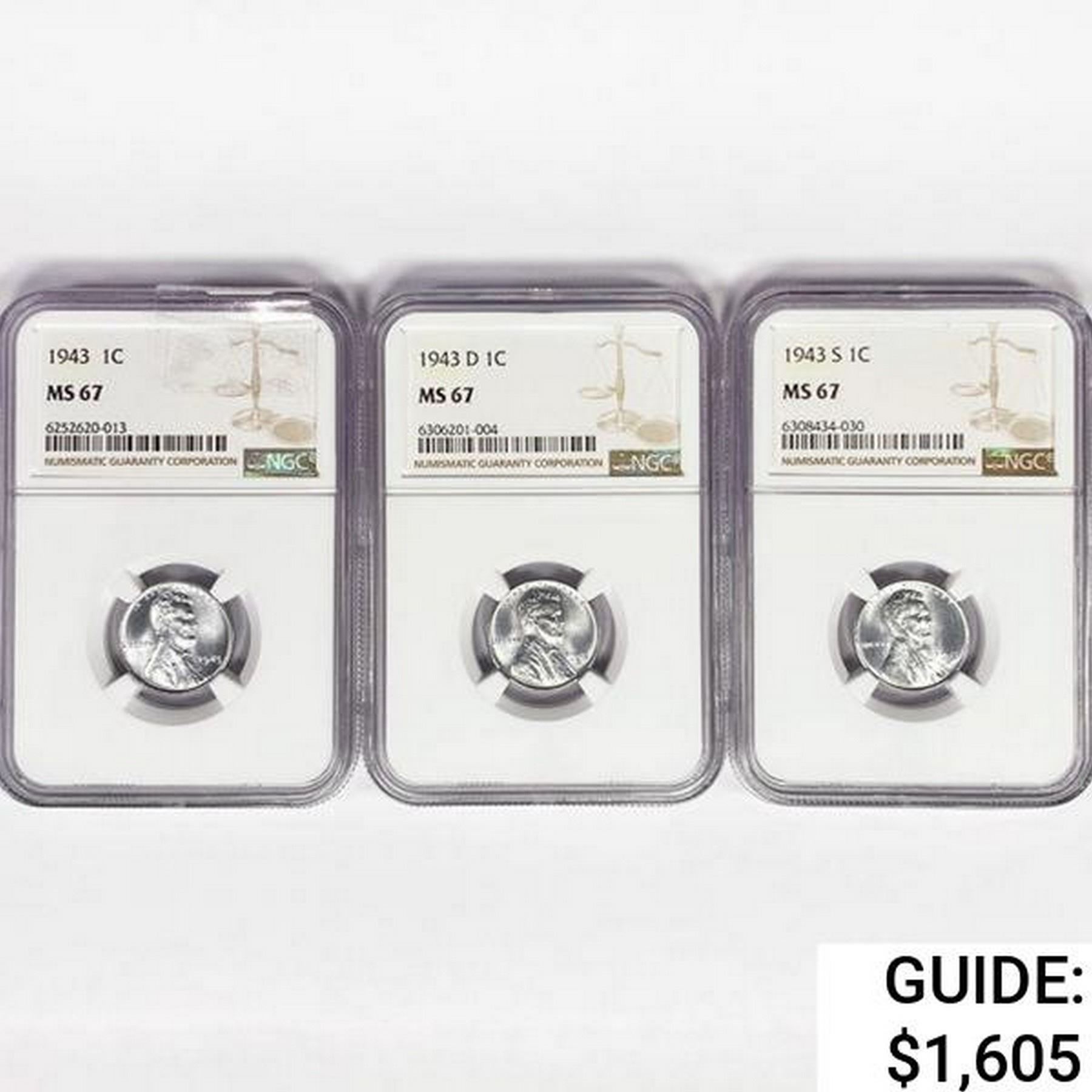 1943 [D,S] Set [3] Wheat Cent NGC MS67