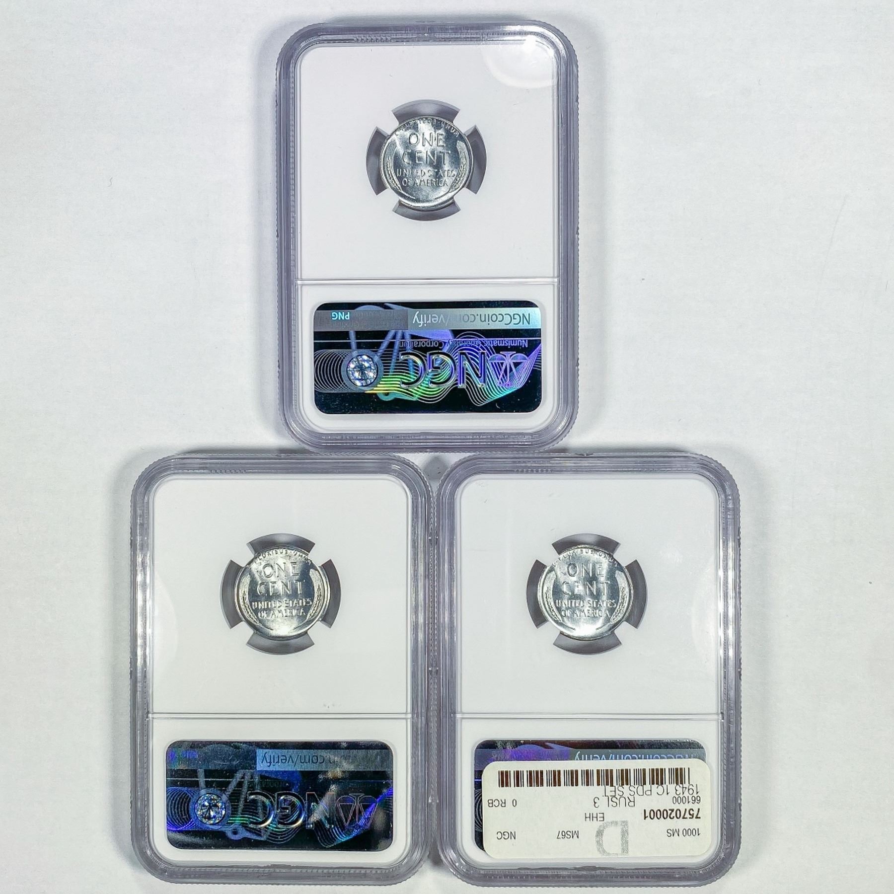 1943 [D,S] Set [3] Wheat Cent NGC MS67