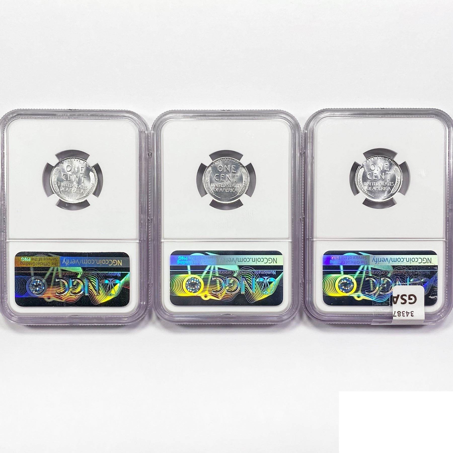 1943 [D,S] Set [3] Wheat Cent NGC MS67