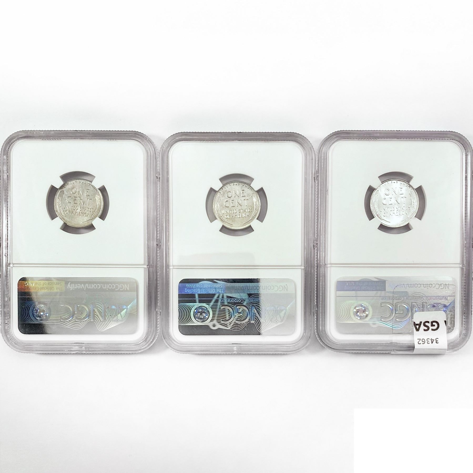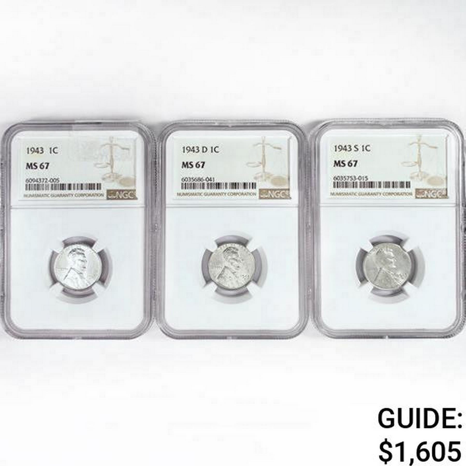 1943 [D,S] Set [3] Wheat Cent NGC MS67