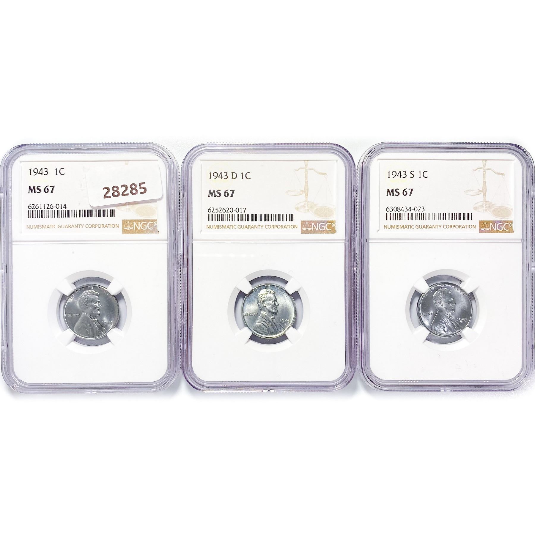 1943 (D,S) Set of 3 Wheat Cent NGC MS67