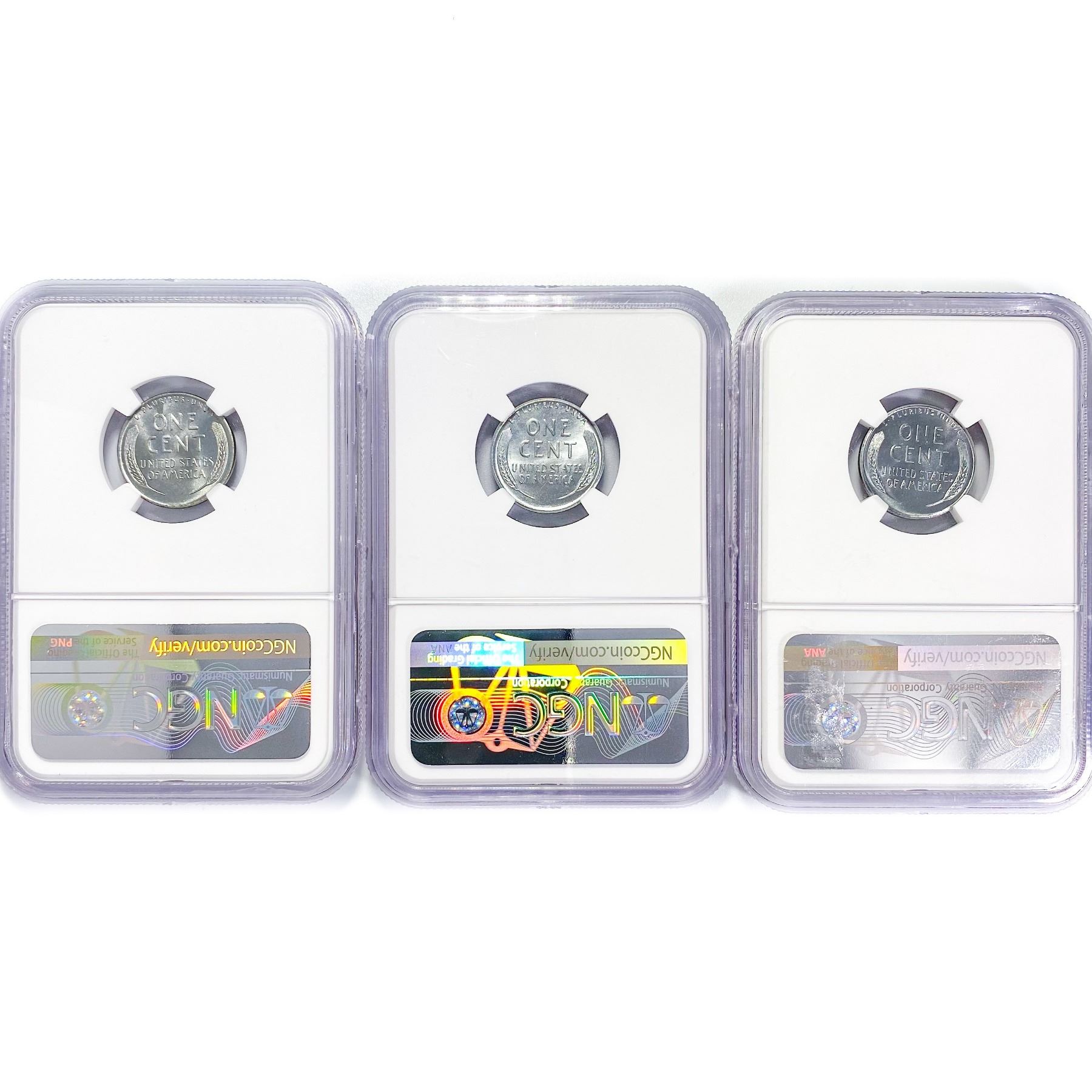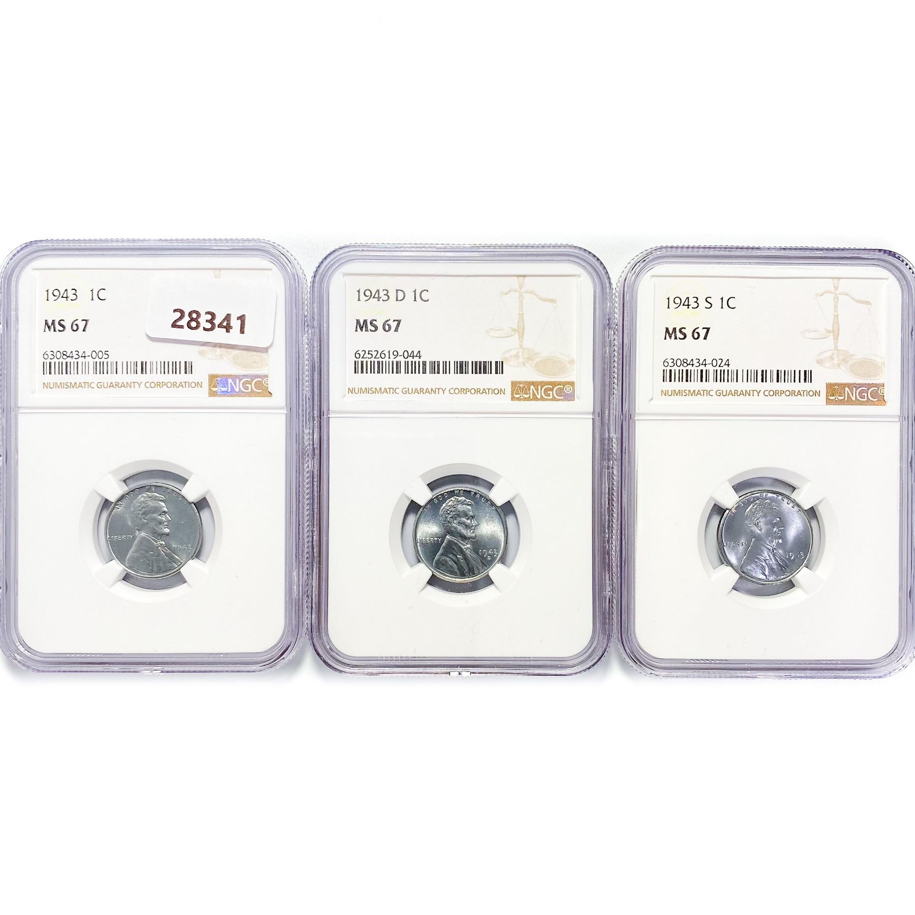 1943 (D,S) Set of 3 Wheat Cent NGC MS67